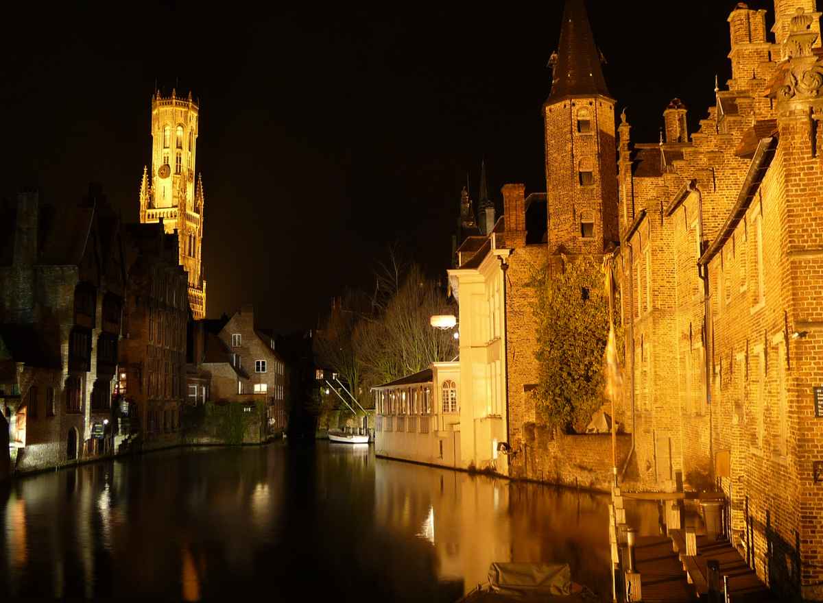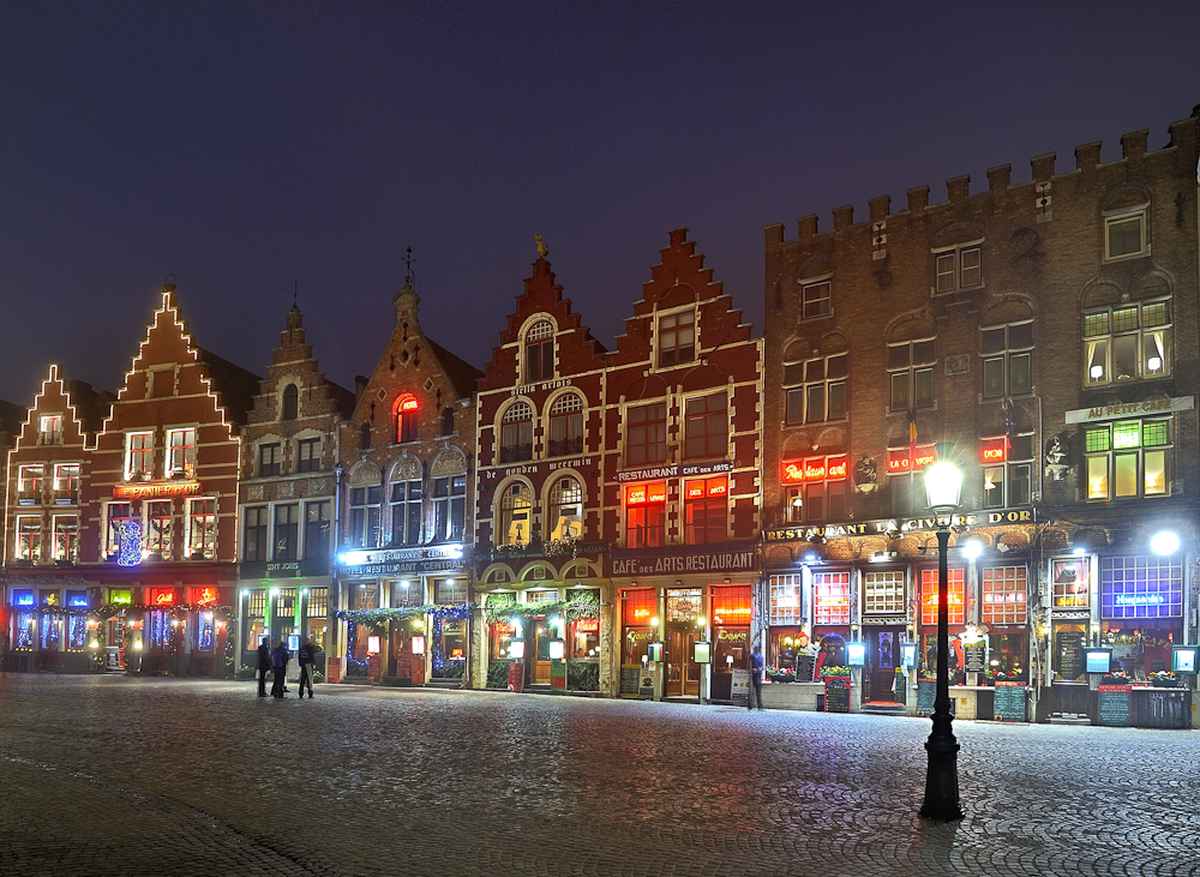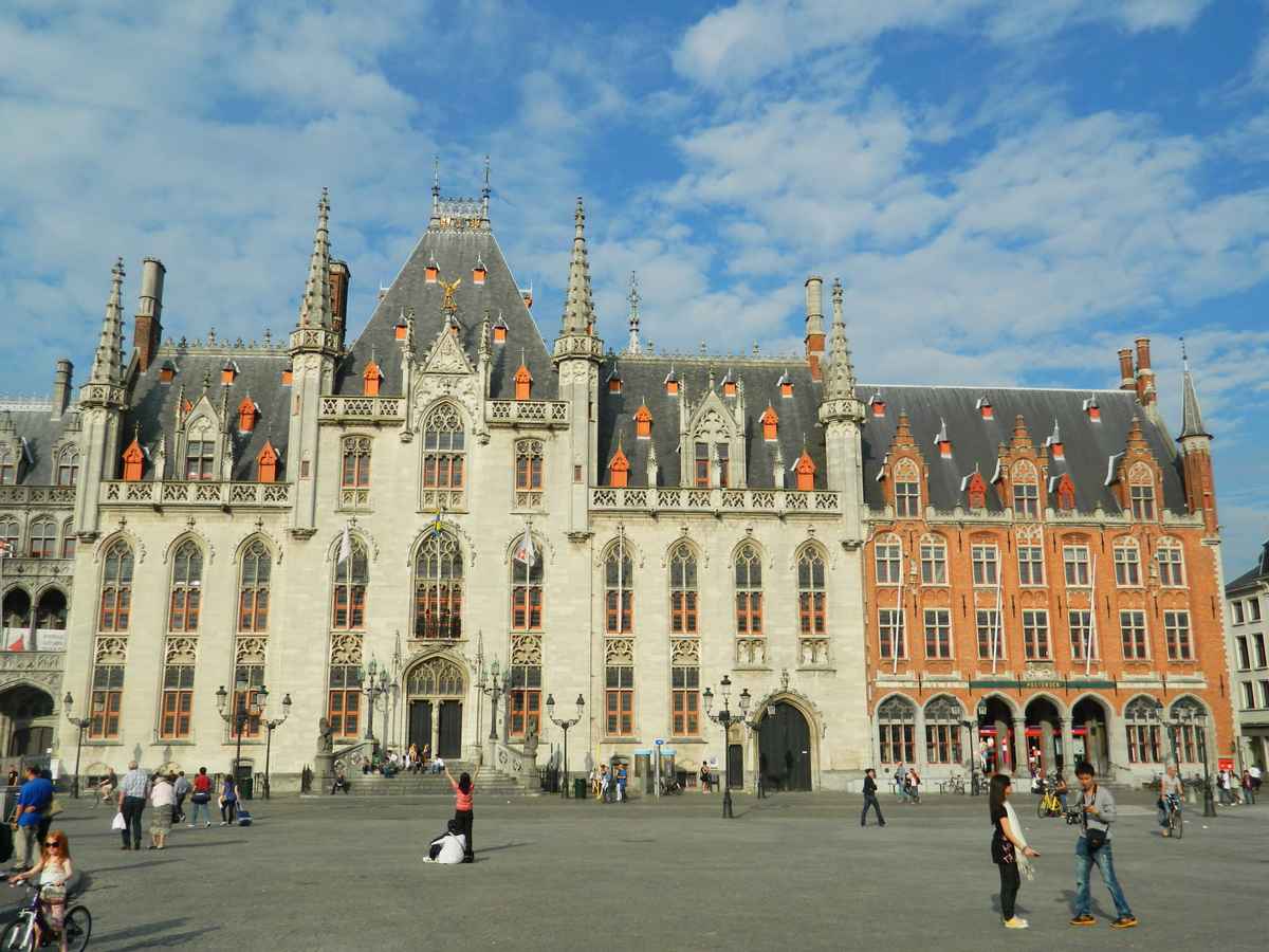 Das Bild zeigt den Marktplatz in Brügge vom Rathaus aus aufgenommen.