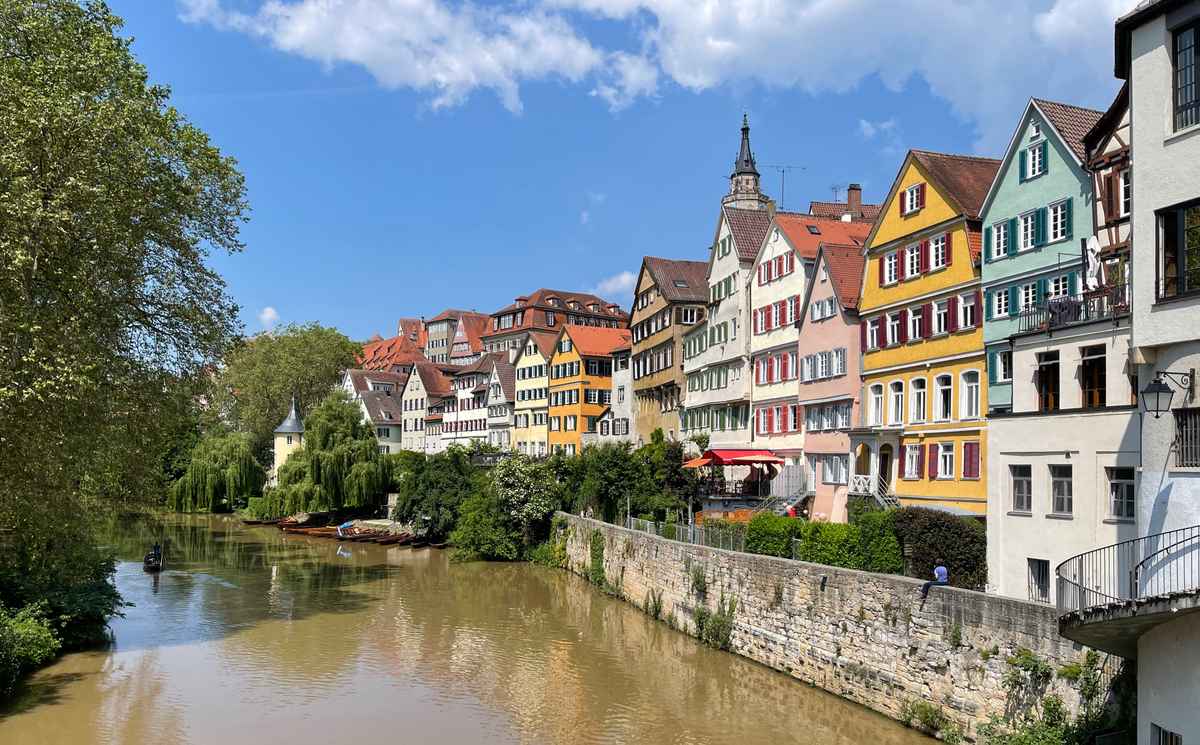 Farbige Fassaden am Neckar bei Tübingen