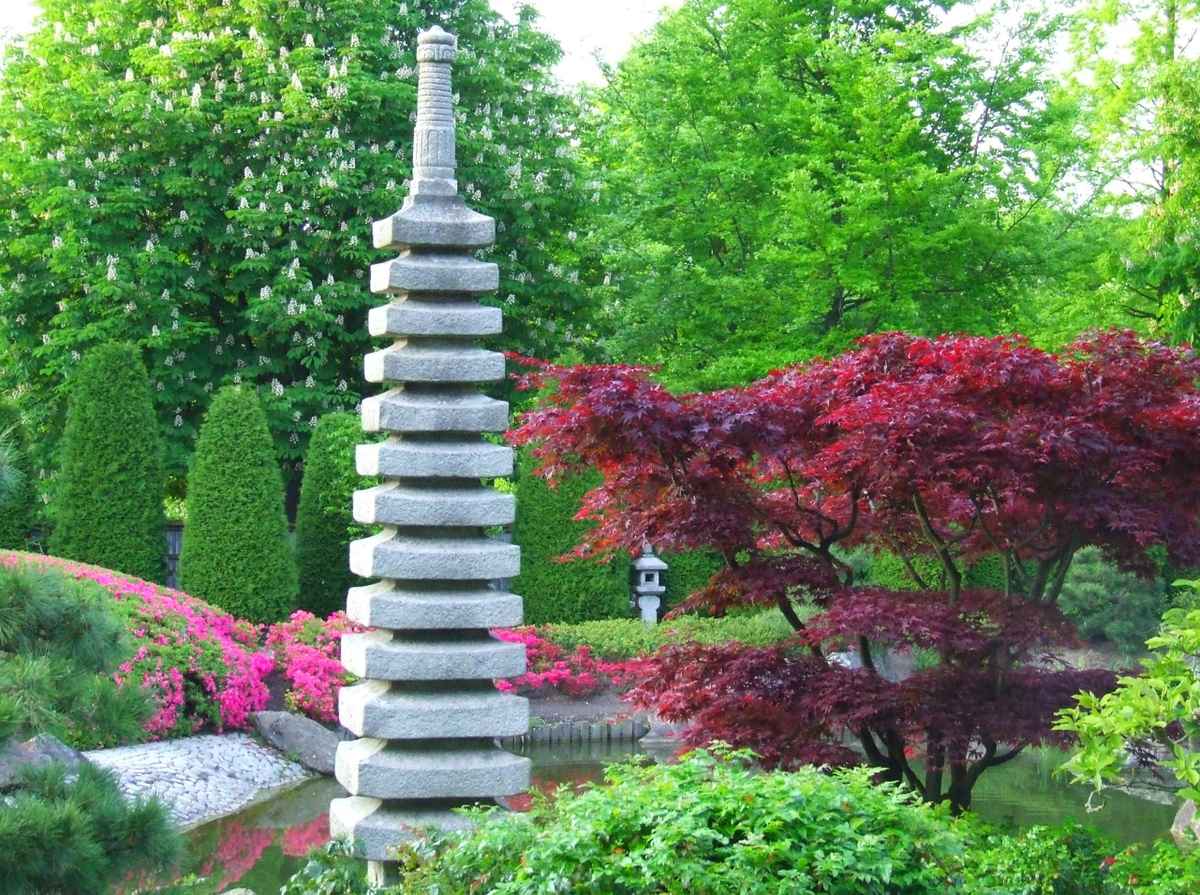 Japanischer Garten mit Statue