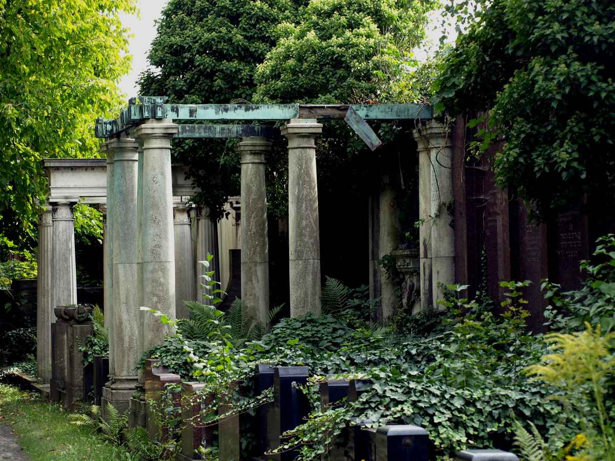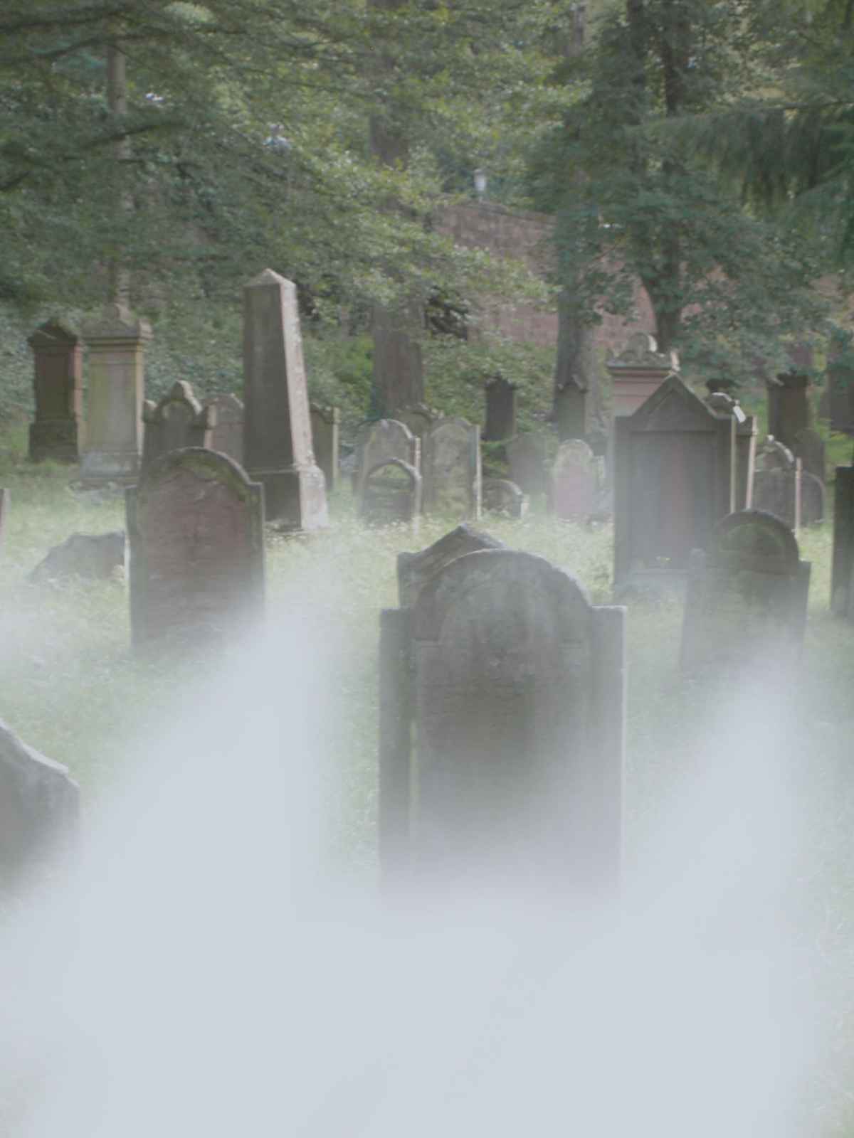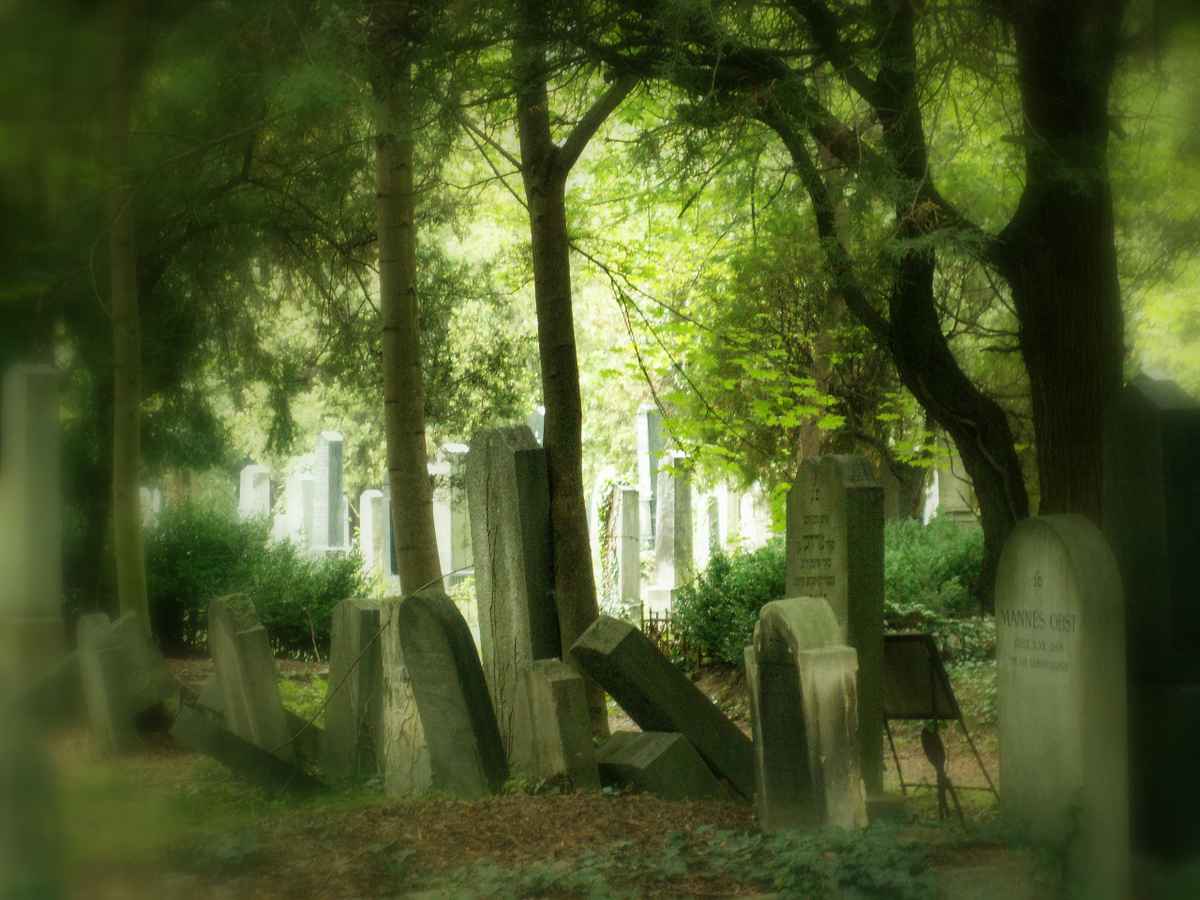 Ein Teil des jüdischen Friedhofs in Pirmasens, integriert in den Waldfriedhof. Die Stille dort wird auf dem Foto wiedergespiegelt. Aufgenommen am späten Nachmittag, Montage aus drei unterschiedlich belichteten Aufnahmen.