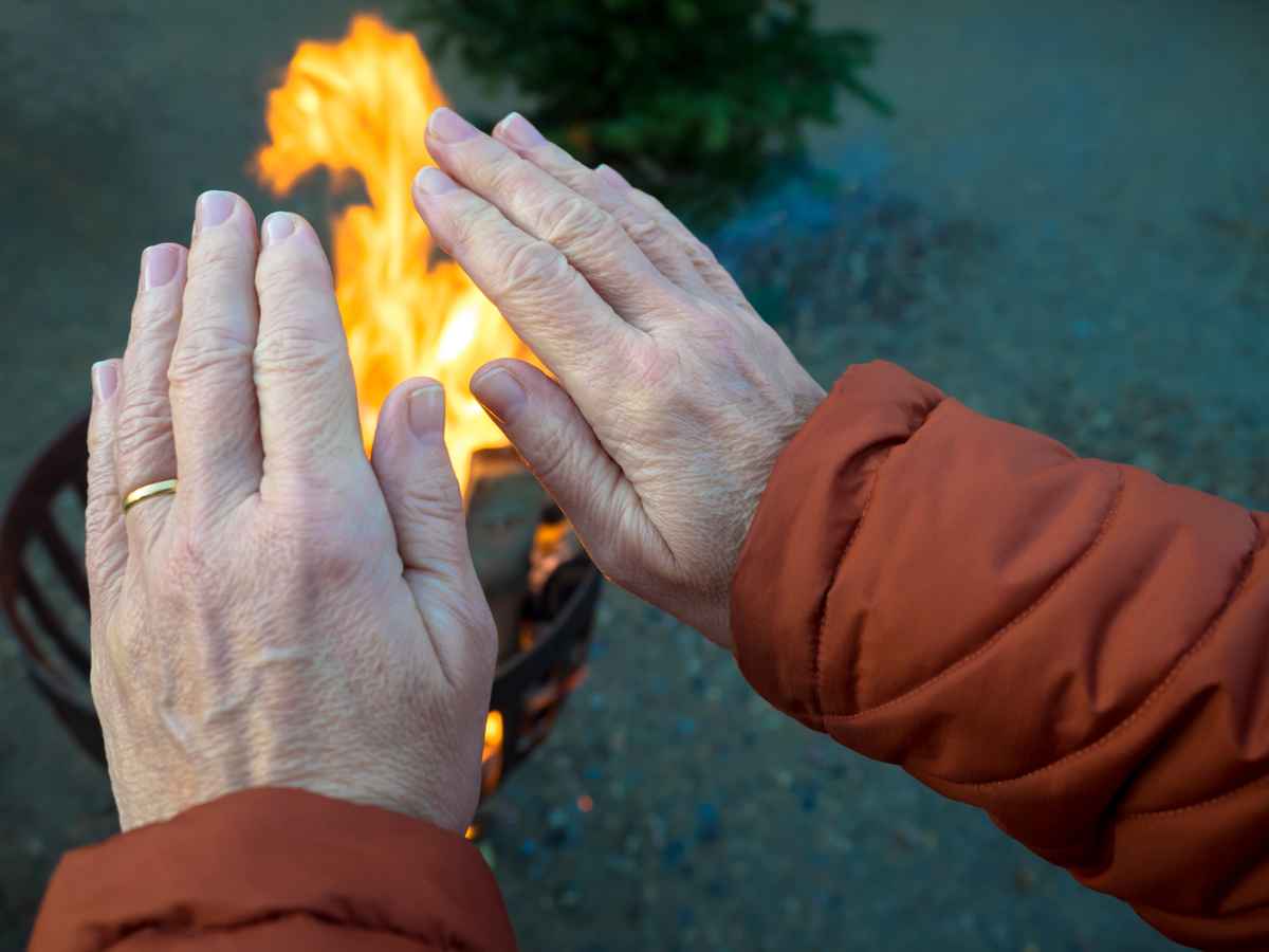 Nach dem Angeln wärmen wir uns am Feuer.
