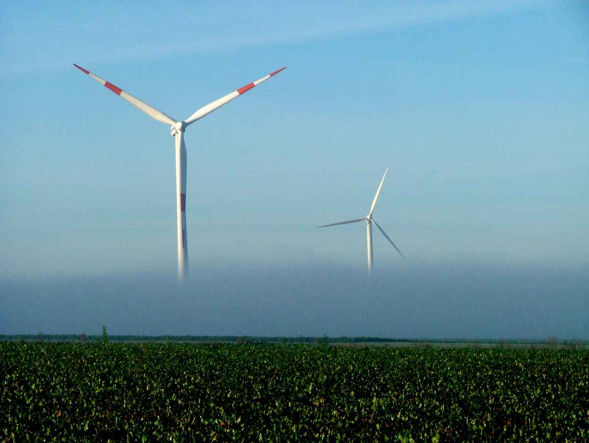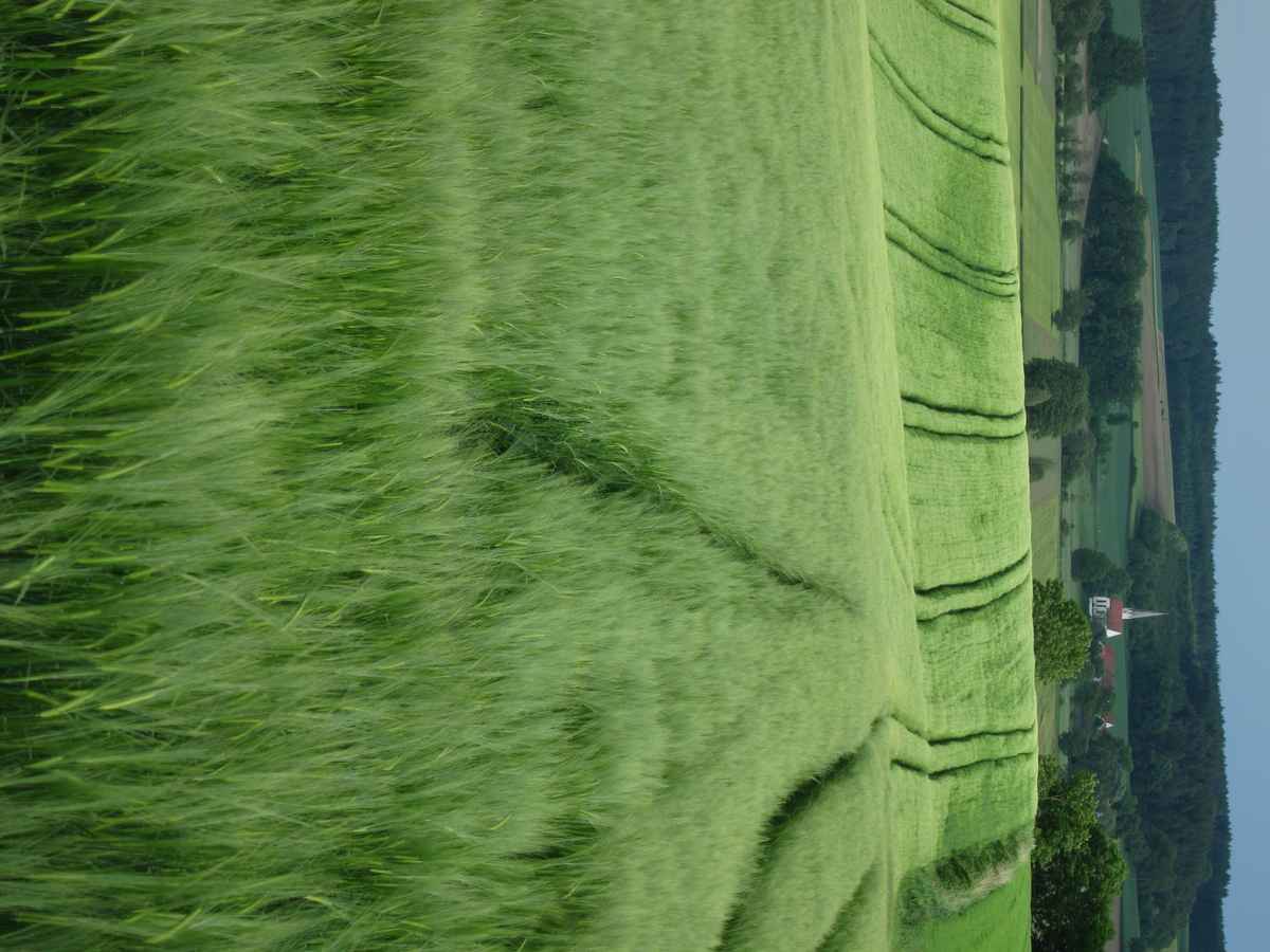 Ein kleiner Teil von Wickede (Ruhr) mit Katholischer Kirche im morgendlichen Dunst, vom Beringhof Wimbern aus gesehen.