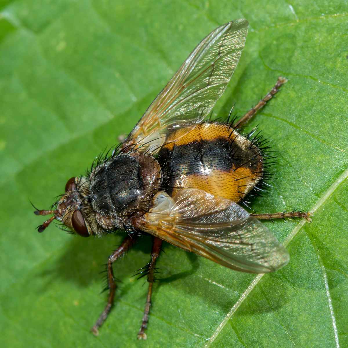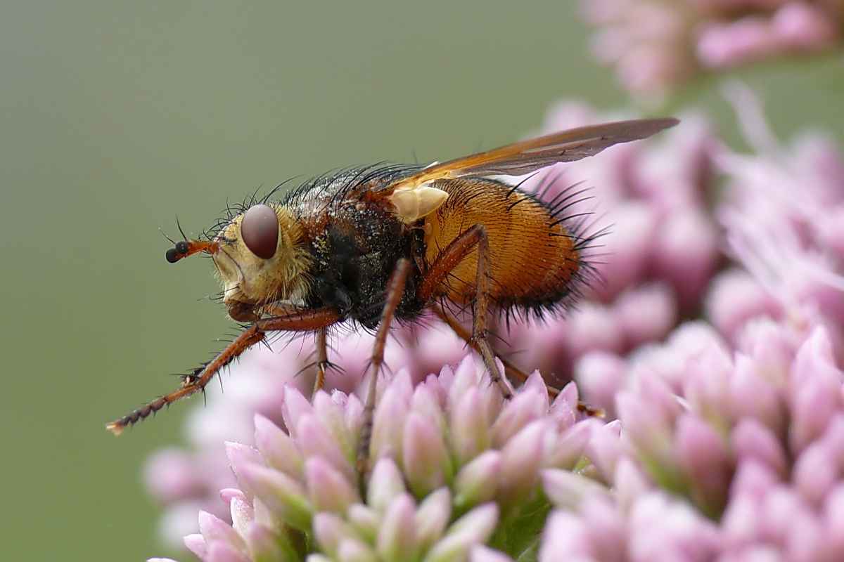 Dieses Vieh ist mir heute vor die Linse gekommen :-) Scheint eine Kieferneulen-Raupenfliege zu sein.