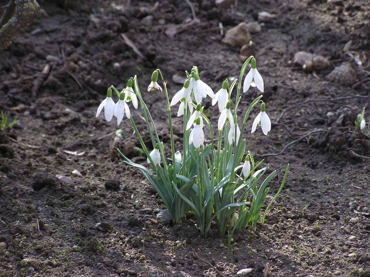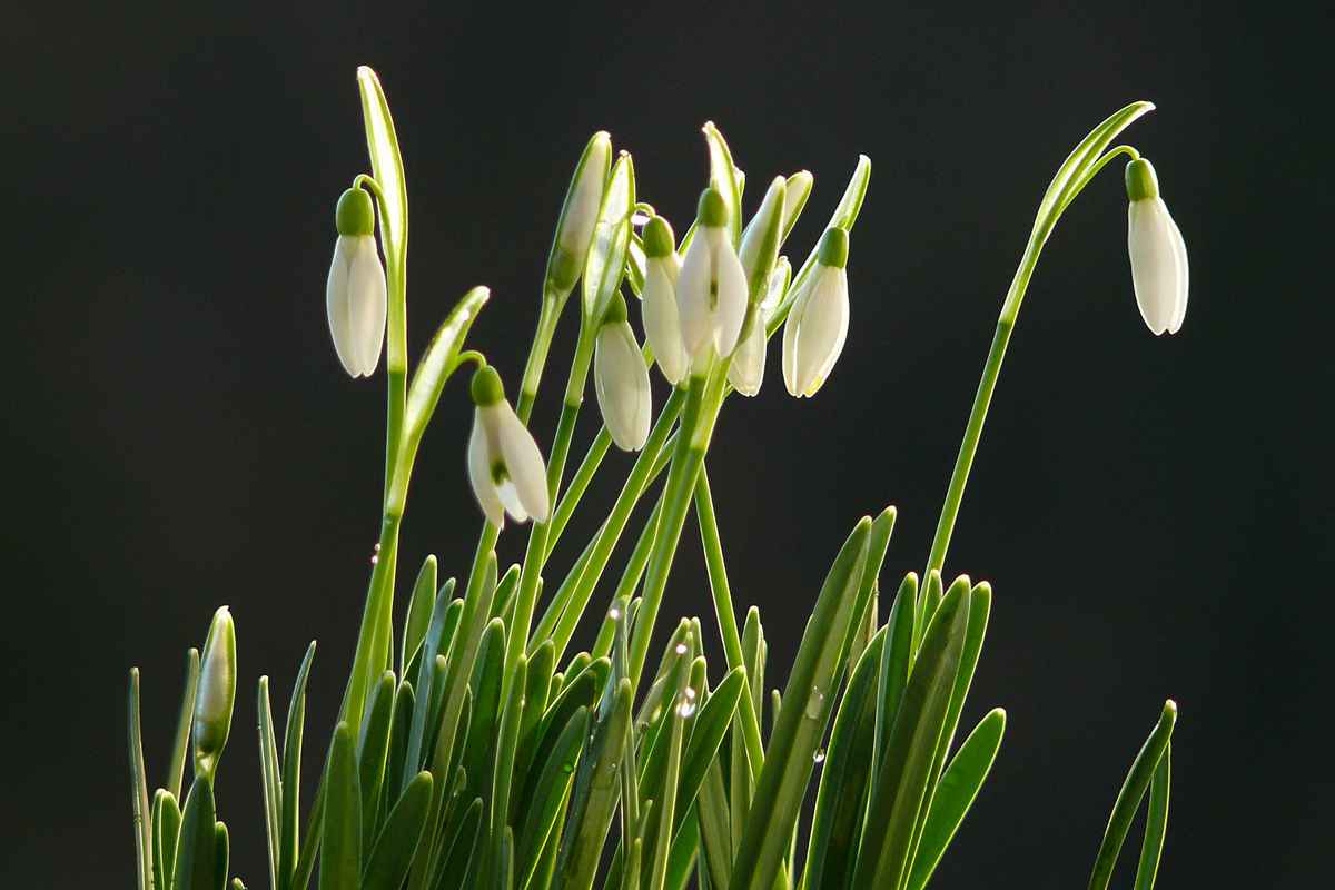 Schneeglöckchen (Galantha nivalis). wollen sich bei Regenwetter nicht öffnen.\r\nEinkeimblättriges, Lilienähnliches,Spargelartiges, \r\nAmaryllisgewächs