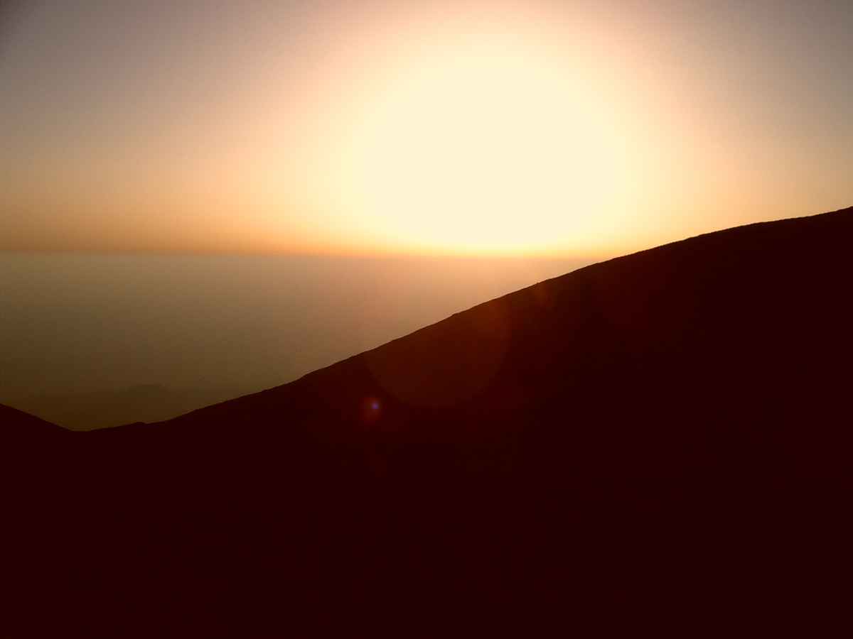 Die Sonne geht unter auf dem Vulkan
