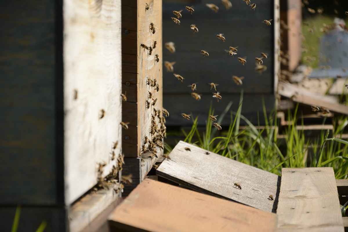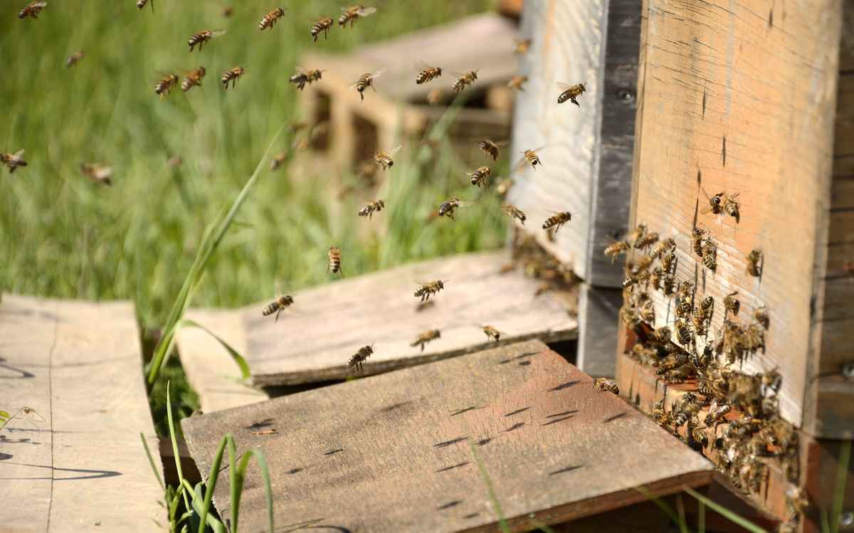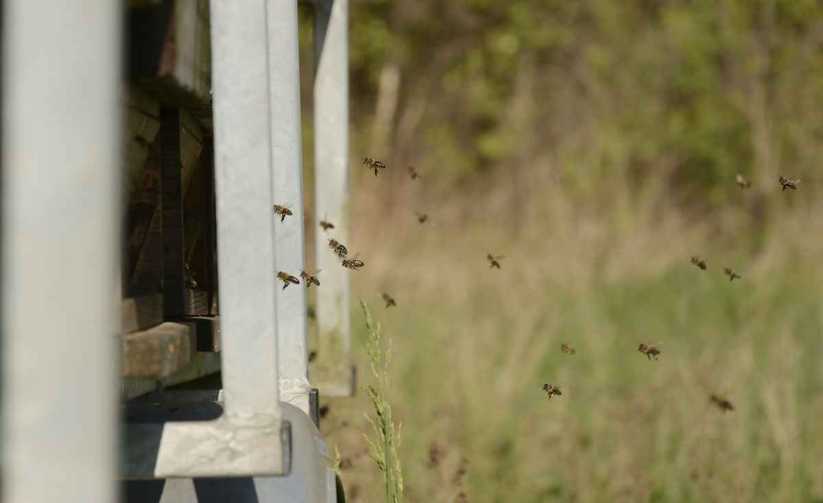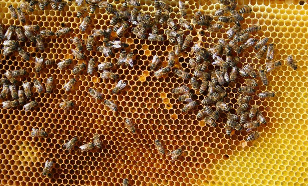 Eine Drone schlüpft bzw. verlässt ihre Wabe