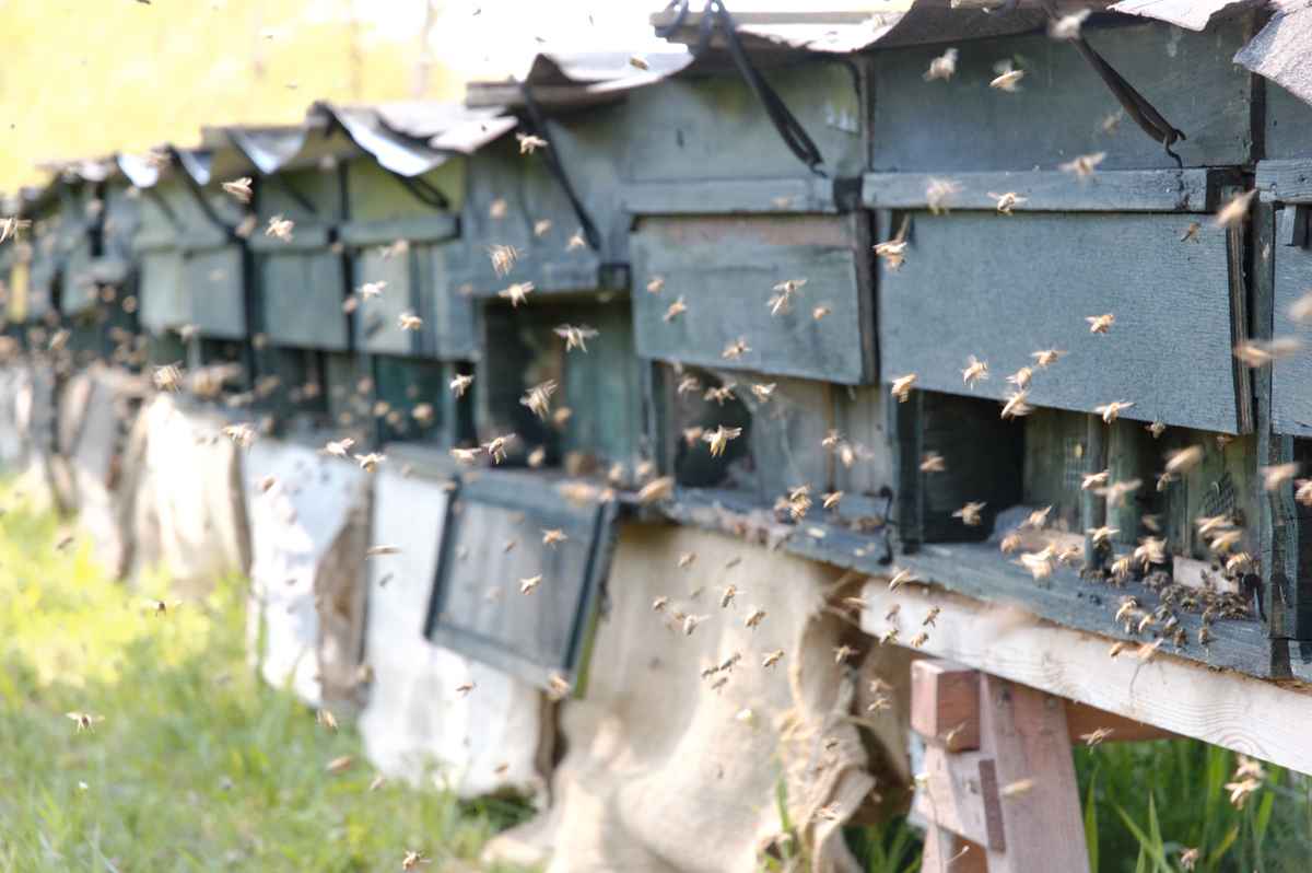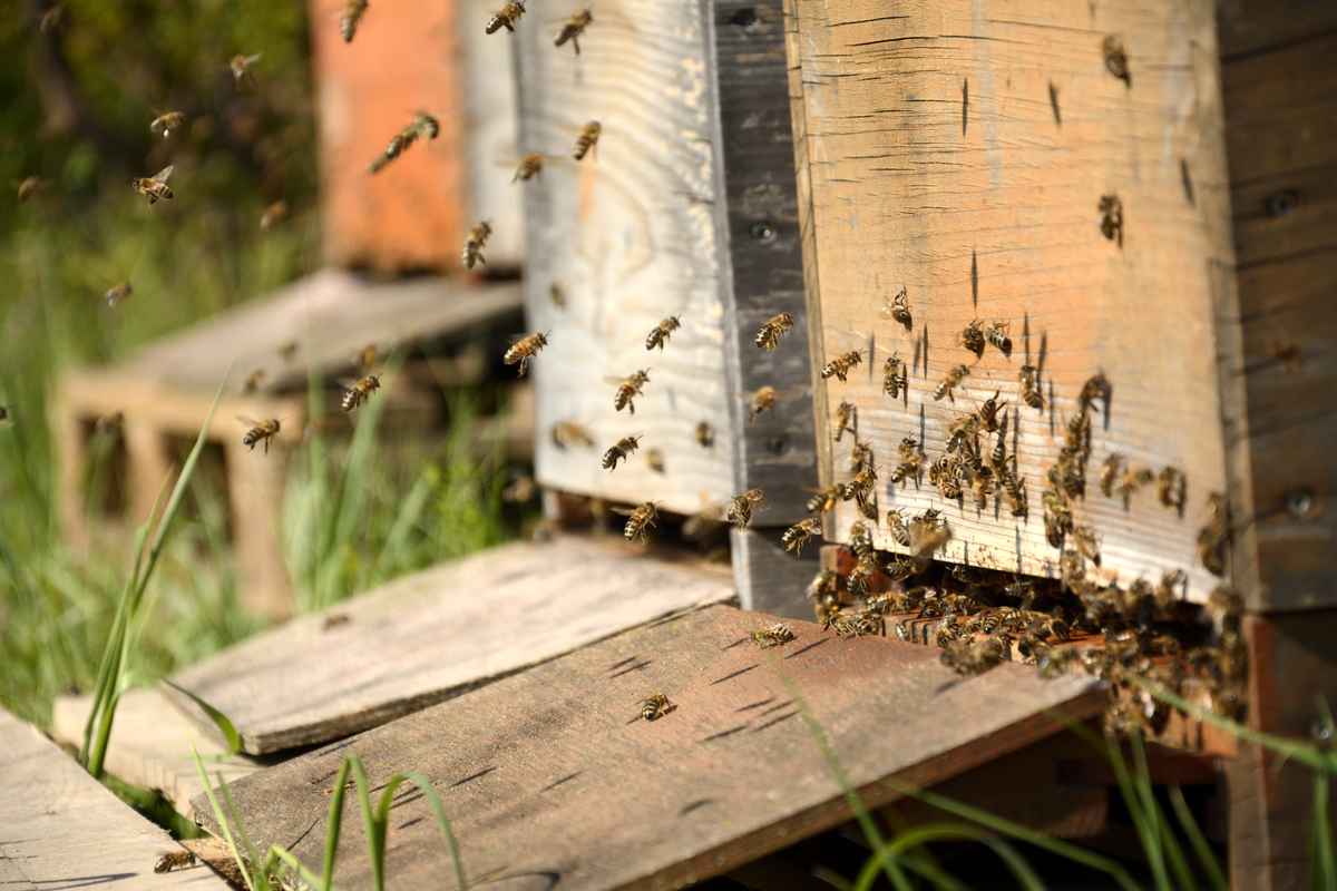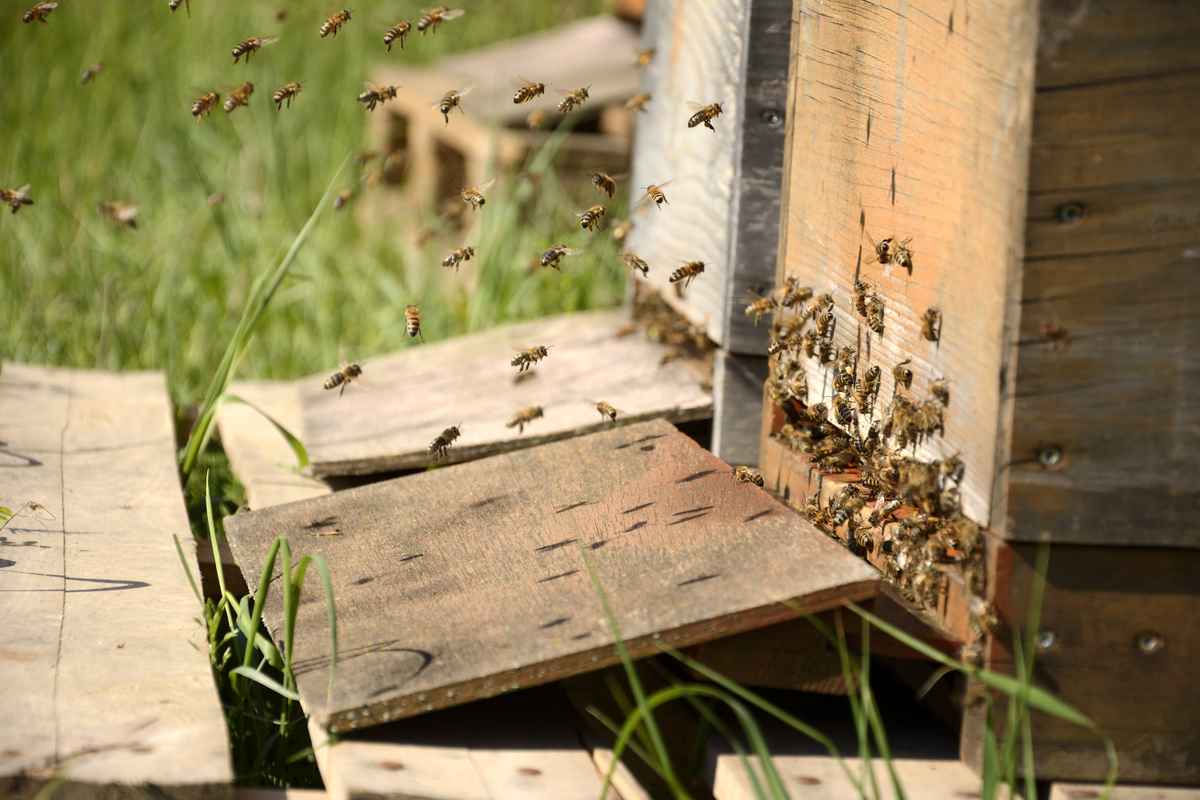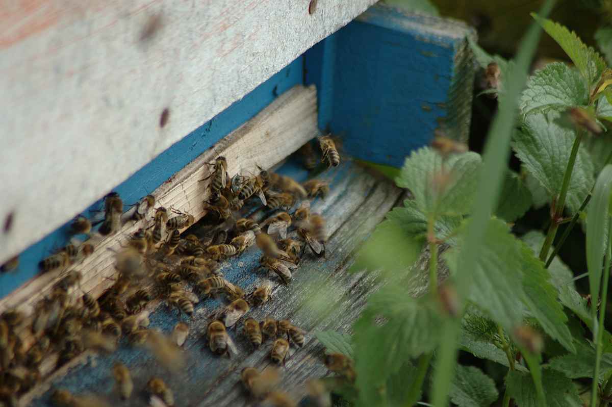 Eine Drone schlüpft bzw. verlässt ihre Wabe