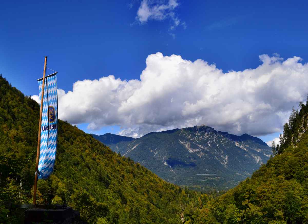 Flagge des Freistaats Bayerns in Nahaufnahme.