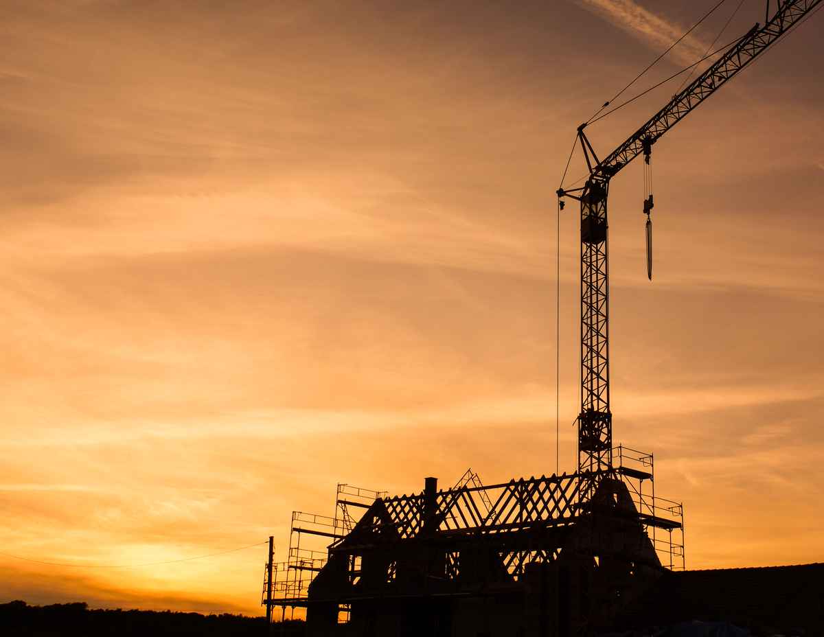 Baustellengiebel mit Kran am Abend 4