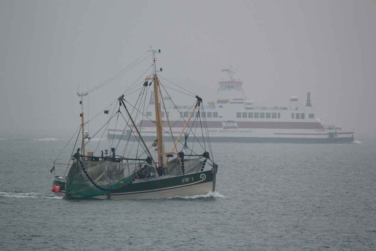 Krabbenkutter gegen Fähre