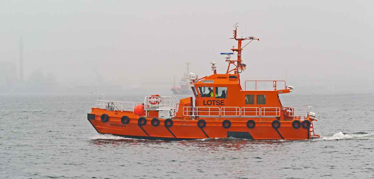 Seenotrettungskeuzer im Hafen von Laboe an der Kieler Förde